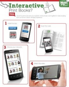 Pat McKeague, the CEO and founder of Math TV, is using QR codes to revolutionize the way students learn math and use textbooks in the classroom. Students can actually scan a QR code in their math books to watch a video of an instructor who shows them how to solve the problem. It’s like having a teacher in your back pocket. Even better is the price tag on this amazing technology. It’s about 1/3 the cost of academic books traditionally used in most classrooms. It’s clients like Pat McKeague who inspire us to think bigger, better, and more creatively. Visit www.mathtv.com